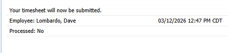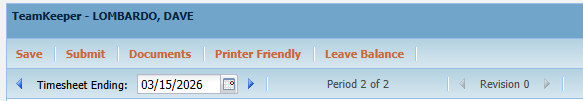 - Submit - At the end of the timesheet period, use the Submit button to send timesheet to supervisor for approval.
