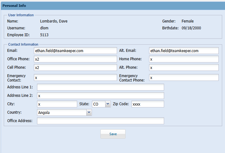 Employee > Personal Info – Allows you to update certain information visible to the administrators.