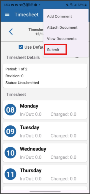 Viewing and Submitting Timesheets (Android)